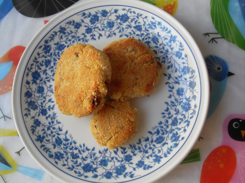 Drop your stale whole wheat bread into your food processor and mix well. Add chickpeas, mashed potatoes and dried tomatoes, mix again. Optional: add 1 egg and Parmigiano cheese.